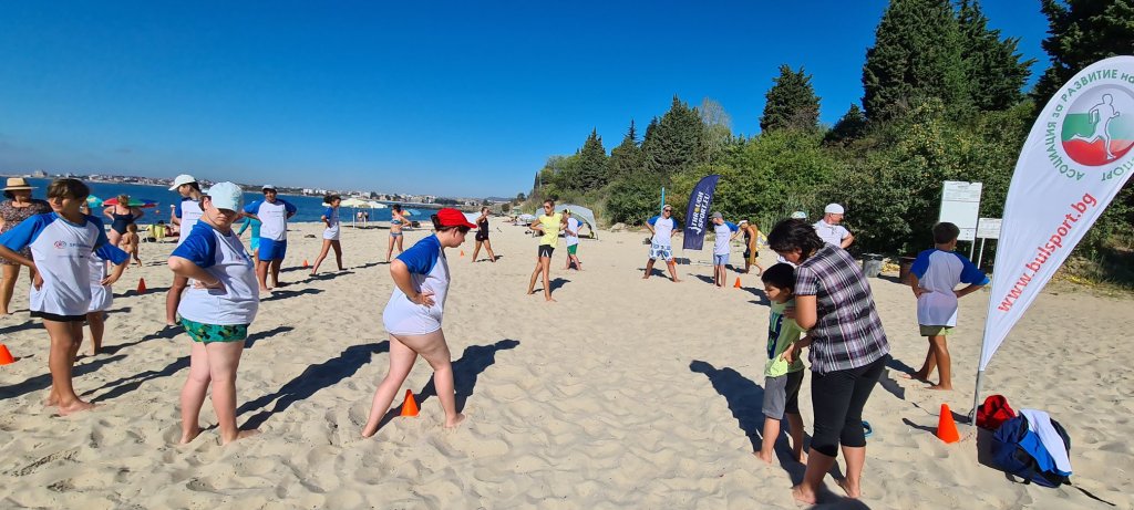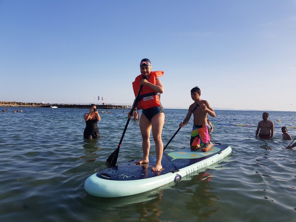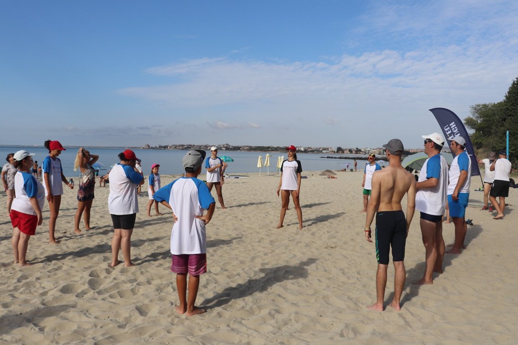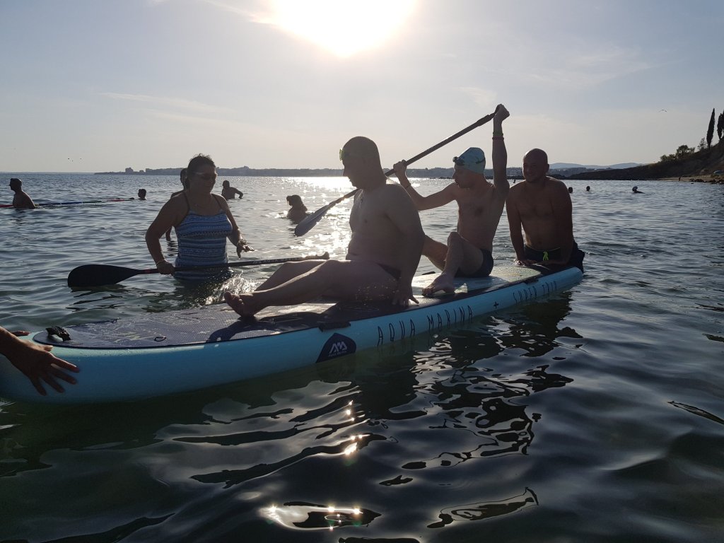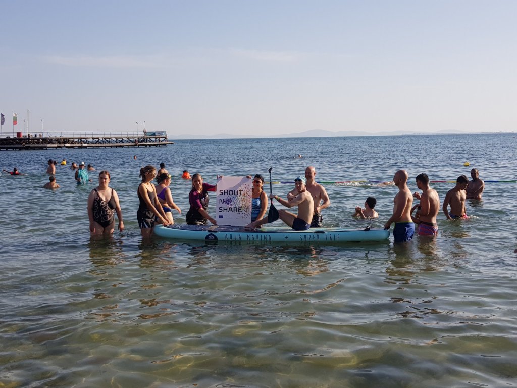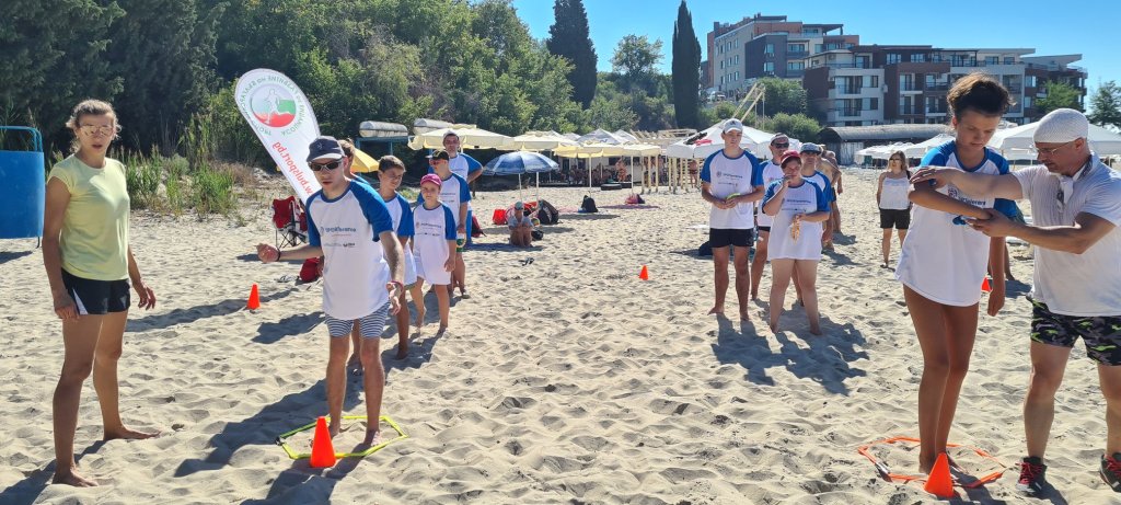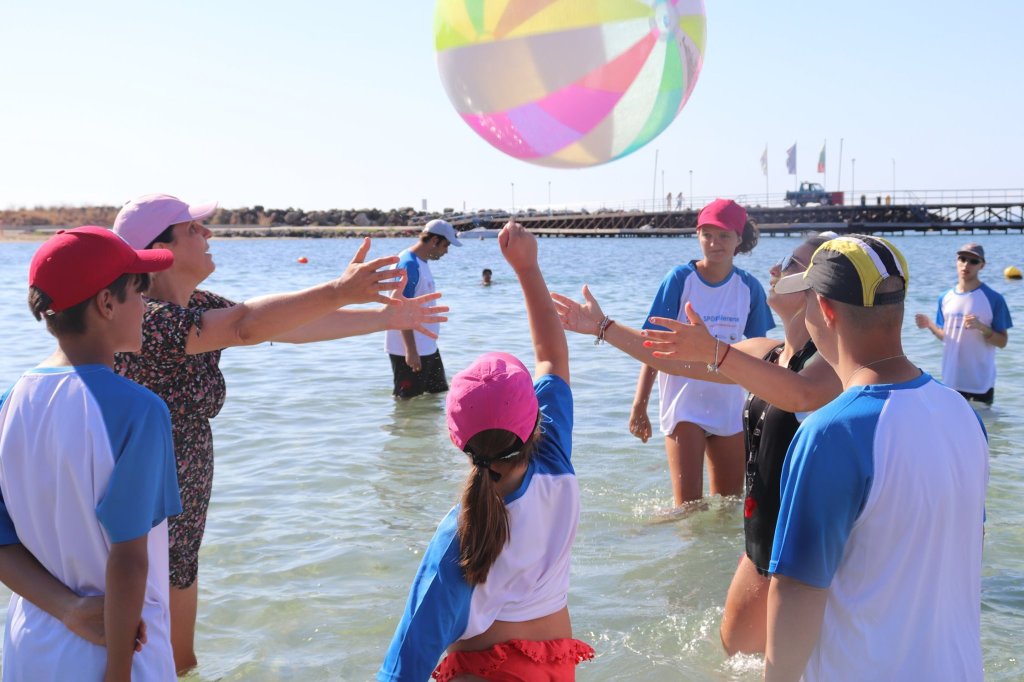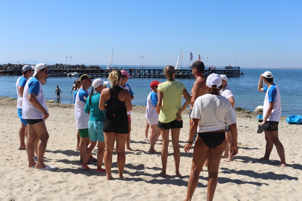 The activities of the sports camp were related to the promotion of the activities of the NSA in the field of adapted water sports for people with different types of disabilities and special needs. The camp was opened by Prof. Nikolay Izov – Rector of NSA, who welcomed the participants, wished them success and took part in their first sports training on the beach. During the activities, the participants received support from Assoc. Prof. Stoyan Andonov, Deputy Minister of Youth and Sports. The main sports in which the participants took part were sailing, kayaking and swimming. In addition, all participants enjoyed the practice of the modern paddleboarding, as well as activities on the methodology Playdagodgy, which the Bulgarian sports development association implements within the project PLAY’IN Together and activities with the methodology Education through sport, on which BSDA works within of the co-funded Erasmus+ initiatives #SPORTolerance and Sport.Youth.Inclusion. There was also a hike within the Hike Together project, during which the participants in the camp enjoyed nature in VUSB Nessebar. All activities during the adapted water sports camp were entitled with the slogan SHOUT’N SHARE in order to raise awareness of youth para-sports.