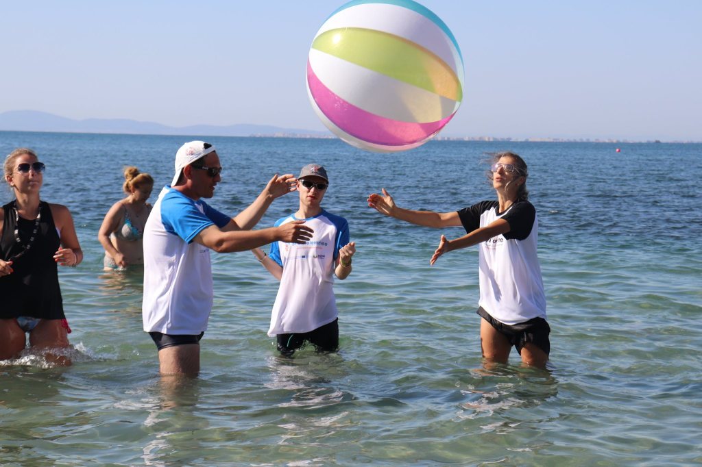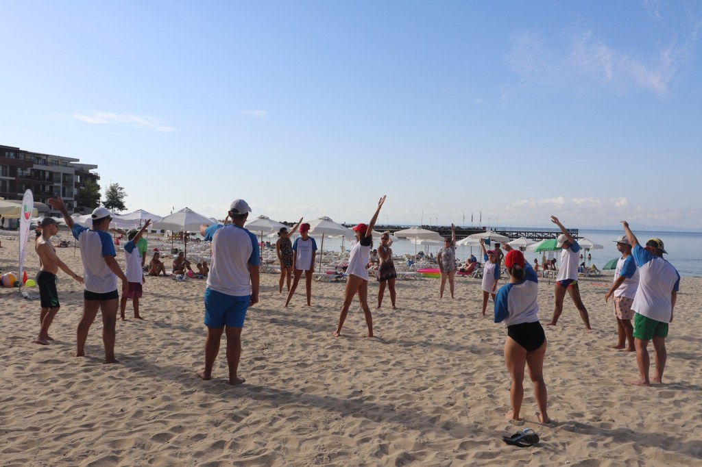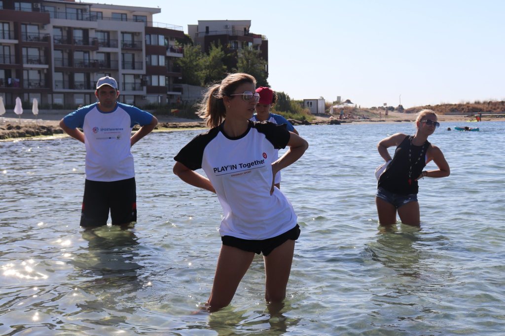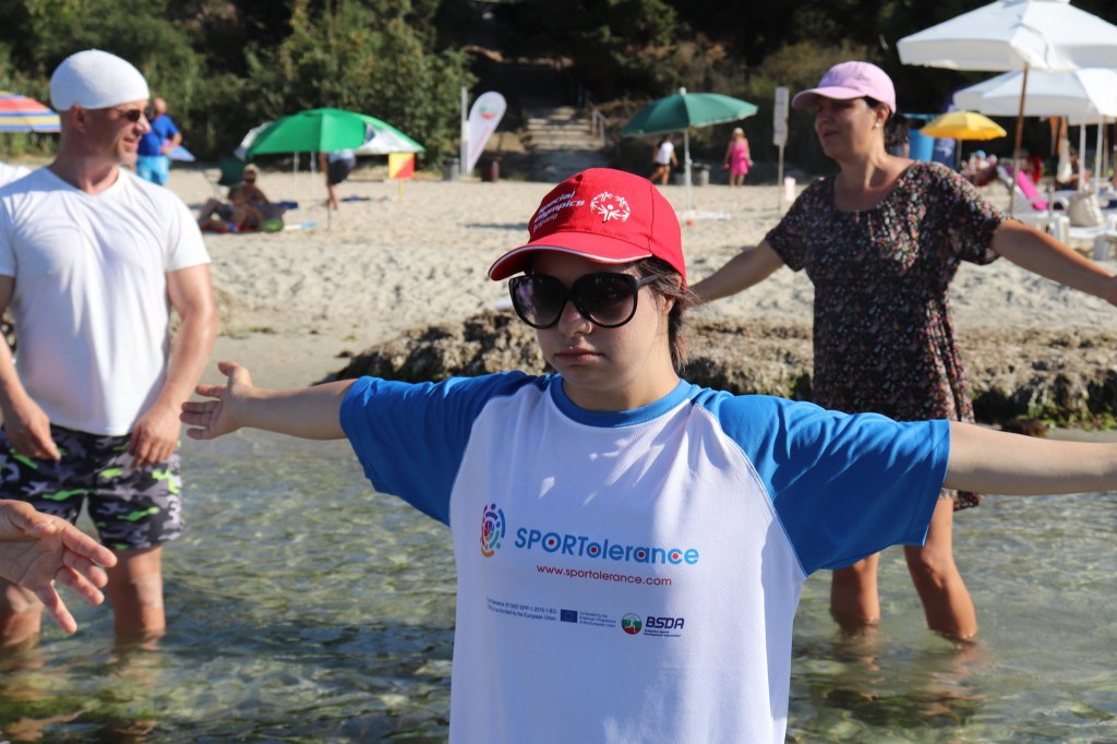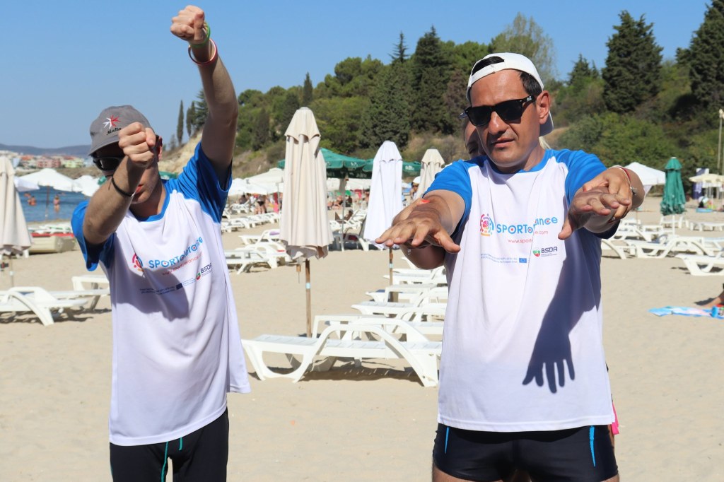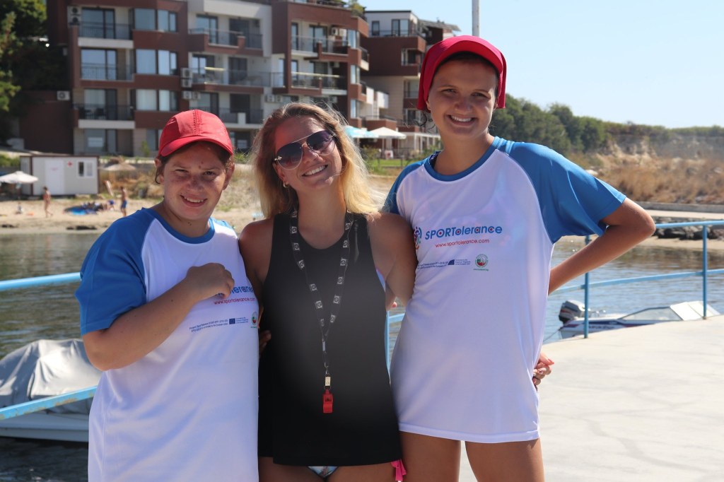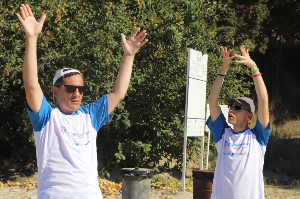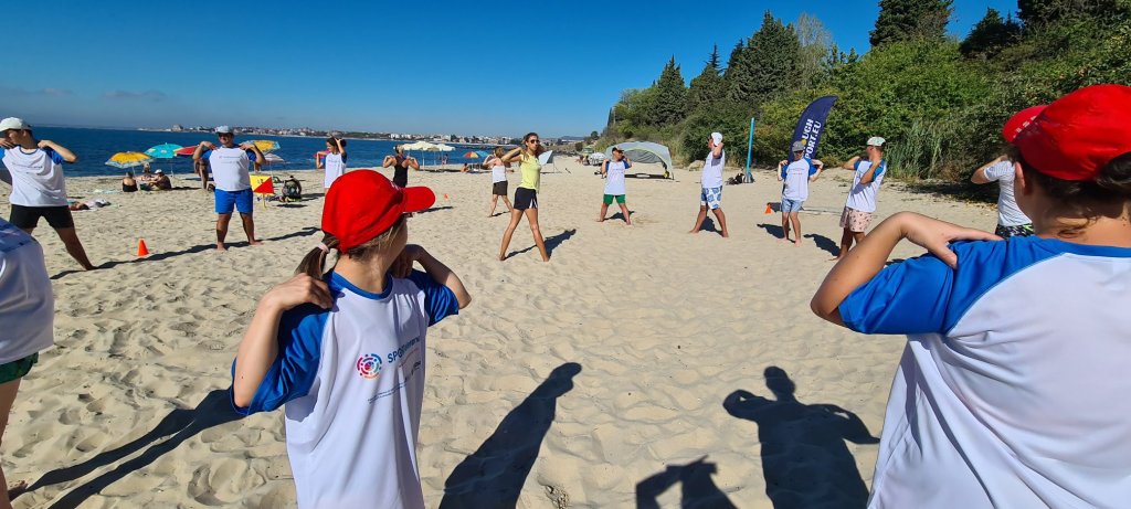 The activities of the sports camp were related to the promotion of the activities of the NSA in the field of adapted water sports for people with different types of disabilities and special needs. The camp was opened by Prof. Nikolay Izov – Rector of NSA, who welcomed the participants, wished them success and took part in their first sports training on the beach. During the activities, the participants received support from Assoc. Prof. Stoyan Andonov, Deputy Minister of Youth and Sports. The main sports in which the participants took part were sailing, kayaking and swimming. In addition, all participants enjoyed the practice of the modern paddleboarding, as well as activities on the methodology Playdagodgy, which the Bulgarian sports development association implements within the project PLAY’IN Together and activities with the methodology Education through sport, on which BSDA works within of the co-funded Erasmus+ initiatives #SPORTolerance and Sport.Youth.Inclusion. There was also a hike within the Hike Together project, during which the participants in the camp enjoyed nature in VUSB Nessebar. All activities during the adapted water sports camp were entitled with the slogan SHOUT’N SHARE in order to raise awareness of youth para-sports.
