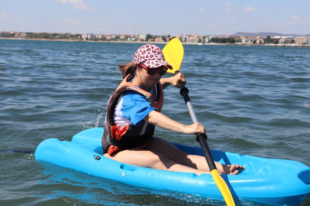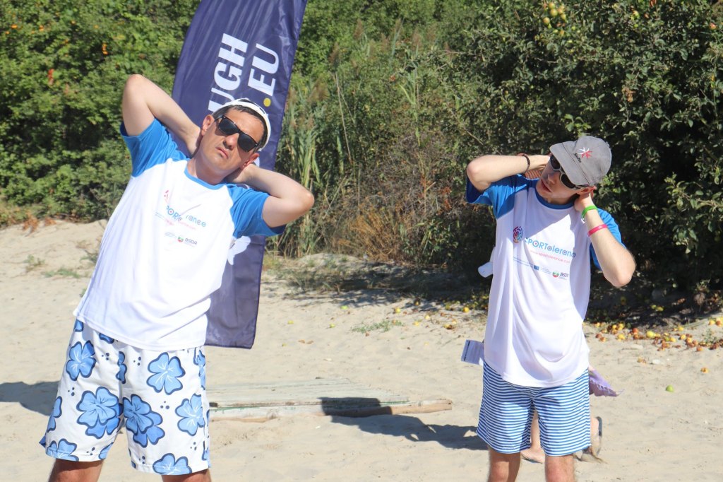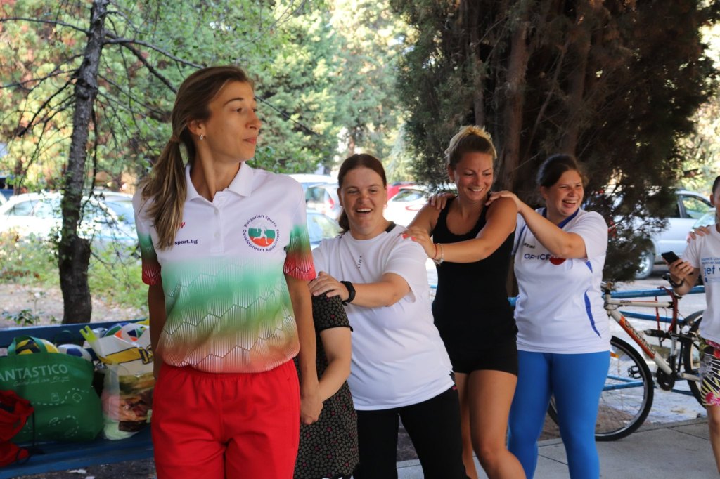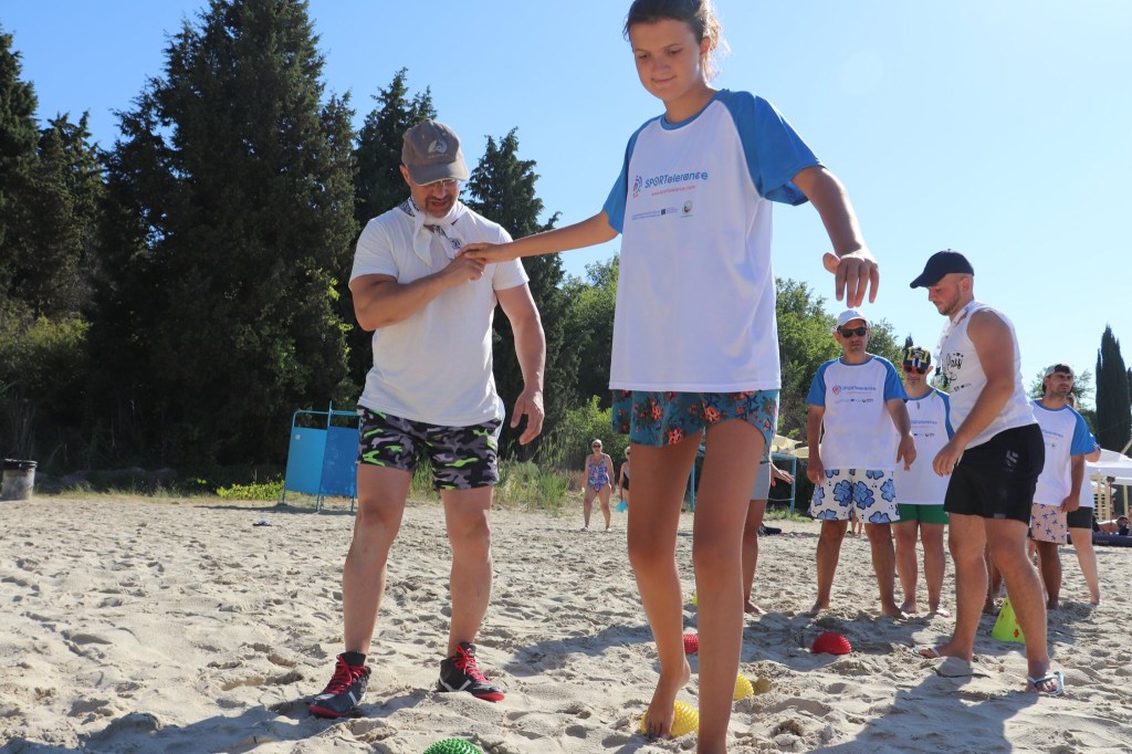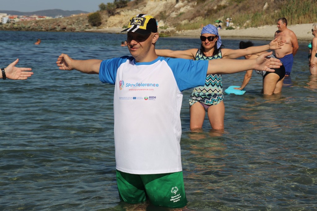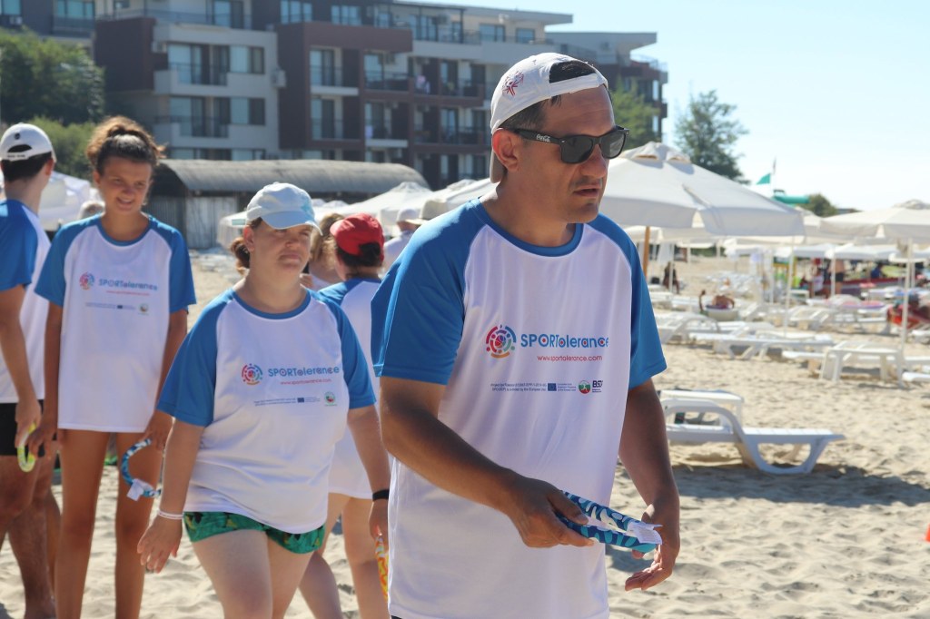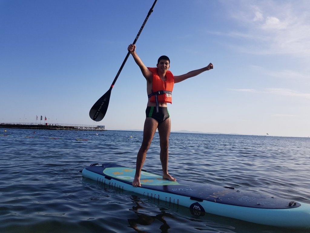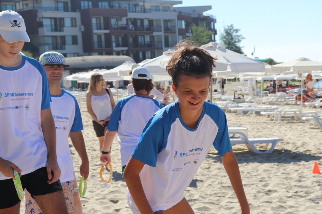 The activities of the sports camp were related to the promotion of the activities of the NSA in the field of adapted water sports for people with different types of disabilities and special needs. The camp was opened by Prof. Nikolay Izov – Rector of NSA, who welcomed the participants, wished them success and took part in their first sports training on the beach. During the activities, the participants received support from Assoc. Prof. Stoyan Andonov, Deputy Minister of Youth and Sports. The main sports in which the participants took part were sailing, kayaking and swimming. In addition, all participants enjoyed the practice of the modern paddleboarding, as well as activities on the methodology Playdagodgy, which the Bulgarian sports development association implements within the project PLAY’IN Together and activities with the methodology Education through sport, on which BSDA works within of the co-funded Erasmus+ initiatives #SPORTolerance and Sport.Youth.Inclusion. There was also a hike within the Hike Together project, during which the participants in the camp enjoyed nature in VUSB Nessebar. All activities during the adapted water sports camp were entitled with the slogan SHOUT’N SHARE in order to raise awareness of youth para-sports.