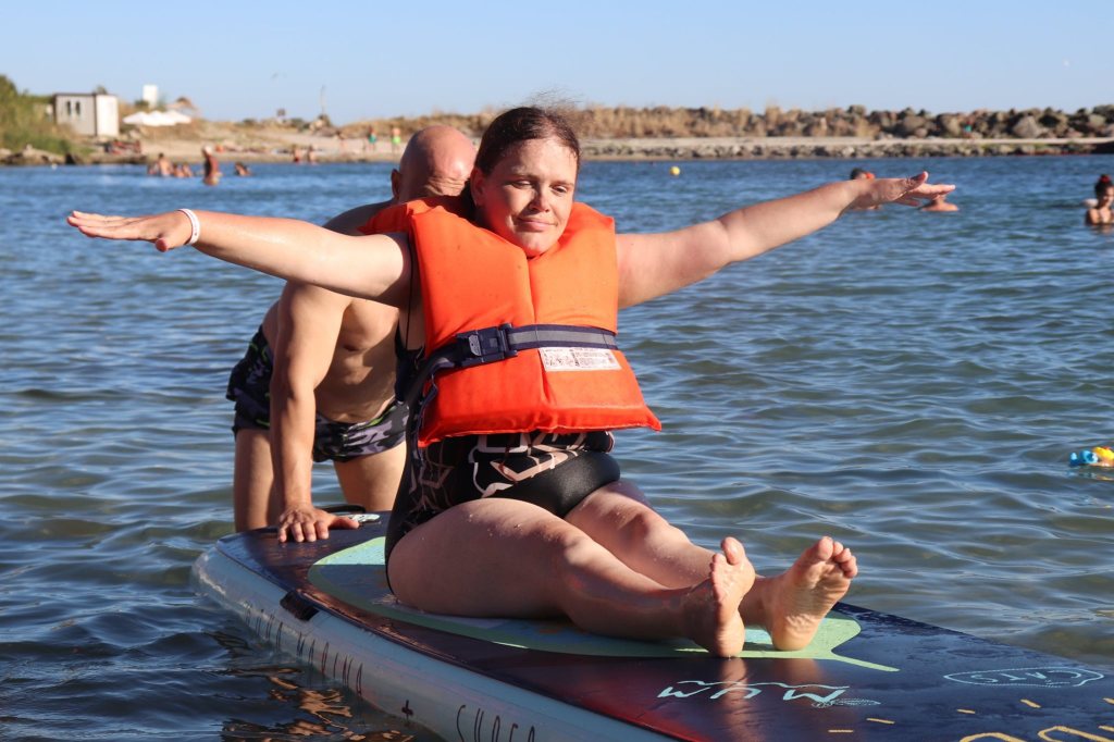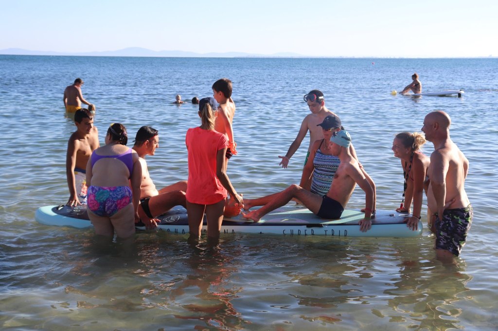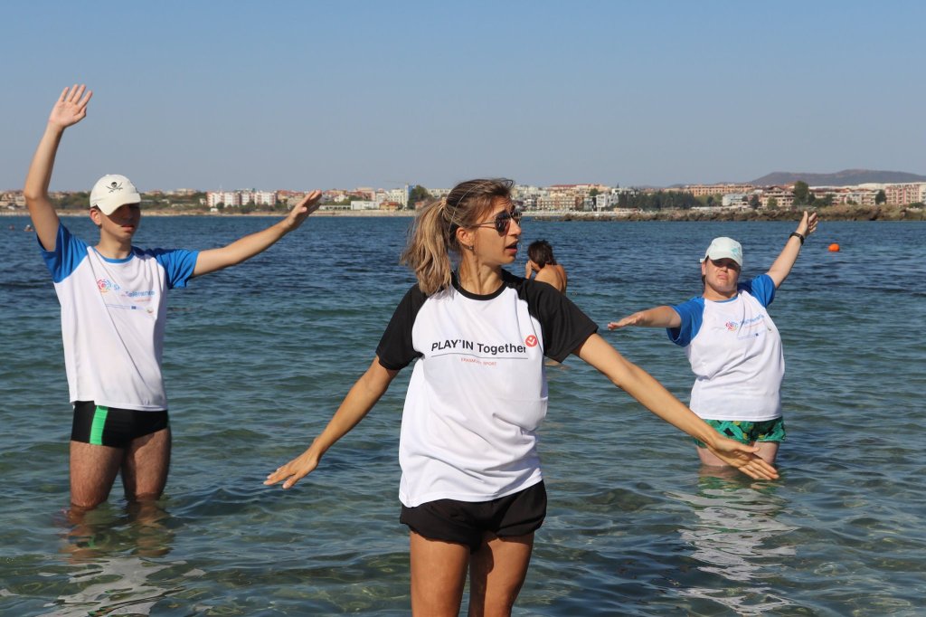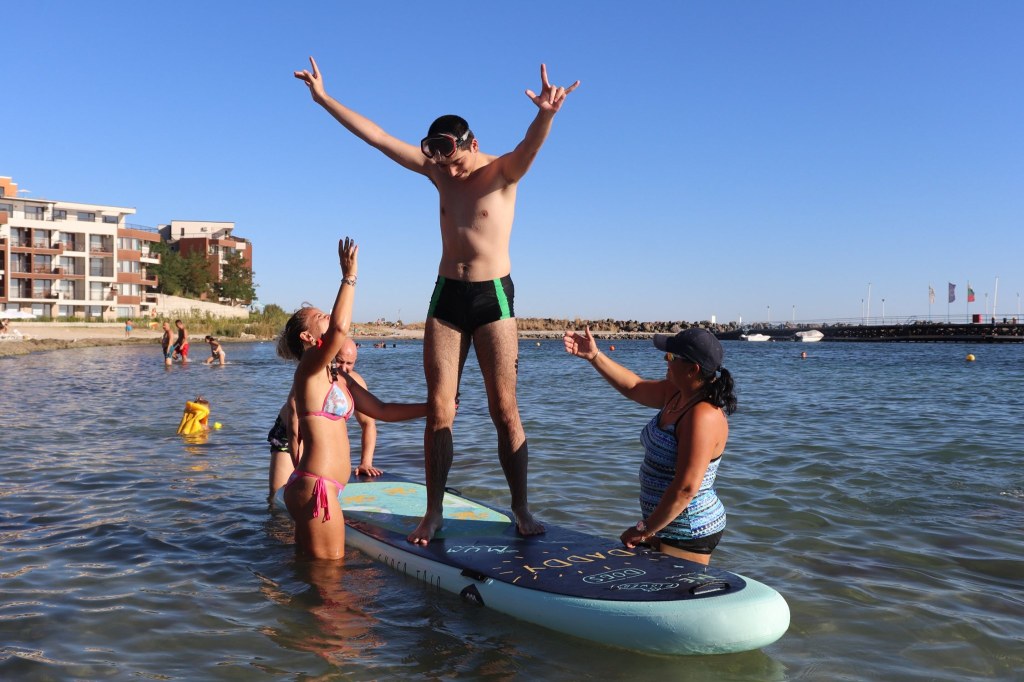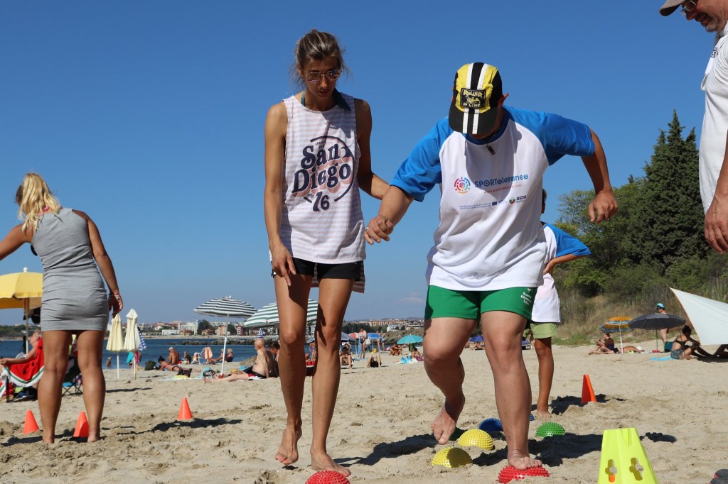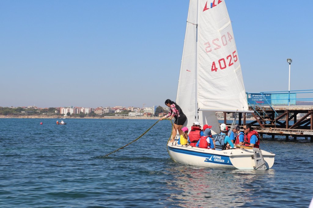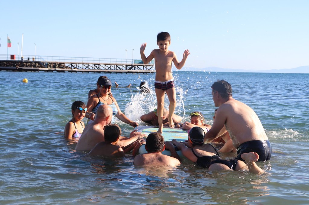 The activities of the sports camp were related to the promotion of the activities of the NSA in the field of adapted water sports for people with different types of disabilities and special needs. The camp was opened by Prof. Nikolay Izov – Rector of NSA, who welcomed the participants, wished them success and took part in their first sports training on the beach. During the activities, the participants received support from Assoc. Prof. Stoyan Andonov, Deputy Minister of Youth and Sports. The main sports in which the participants took part were sailing, kayaking and swimming. In addition, all participants enjoyed the practice of the modern paddleboarding, as well as activities on the methodology Playdagodgy, which the Bulgarian sports development association implements within the project PLAY’IN Together and activities with the methodology Education through sport, on which BSDA works within of the co-funded Erasmus+ initiatives #SPORTolerance and Sport.Youth.Inclusion. There was also a hike within the Hike Together project, during which the participants in the camp enjoyed nature in VUSB Nessebar. All activities during the adapted water sports camp were entitled with the slogan SHOUT’N SHARE in order to raise awareness of youth para-sports.