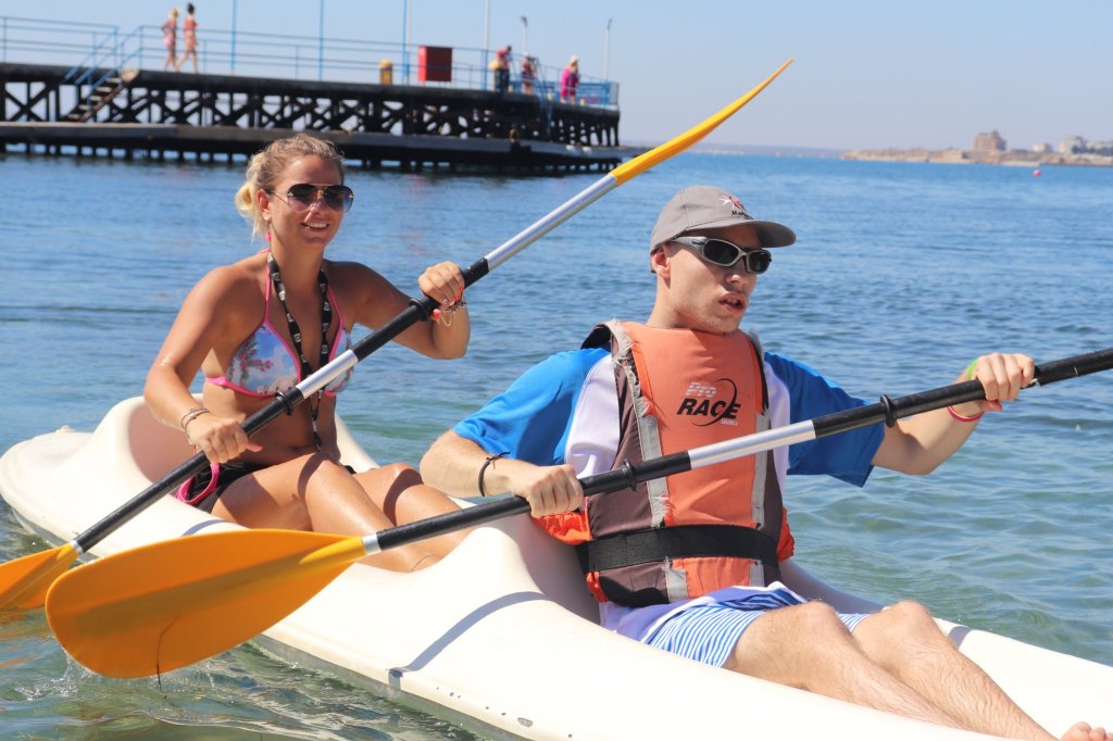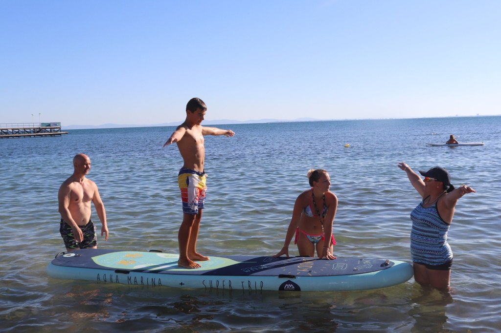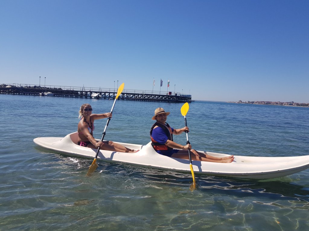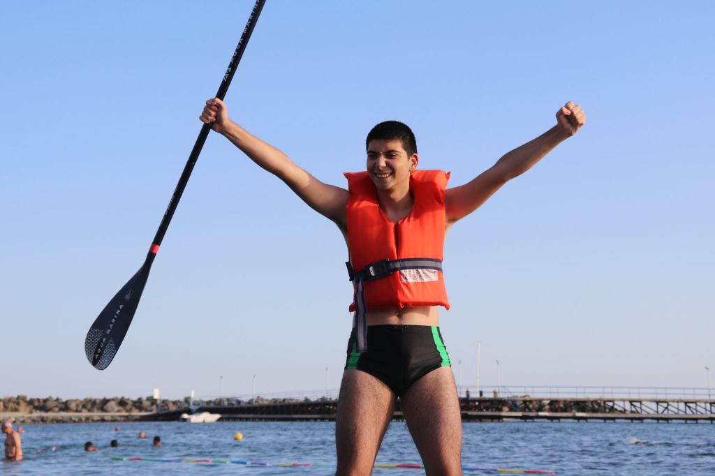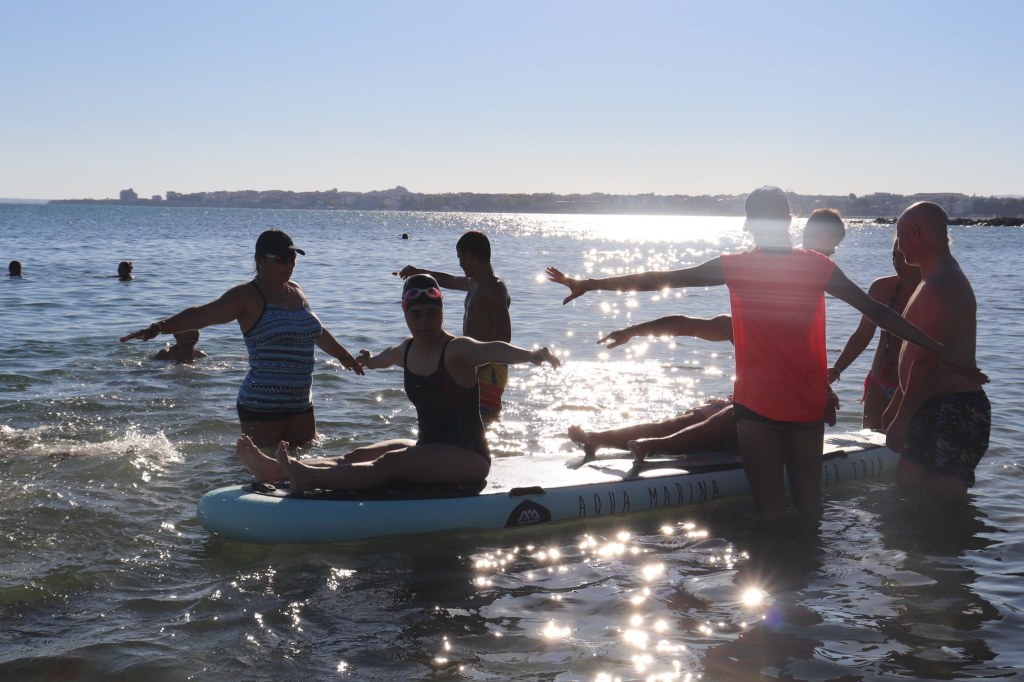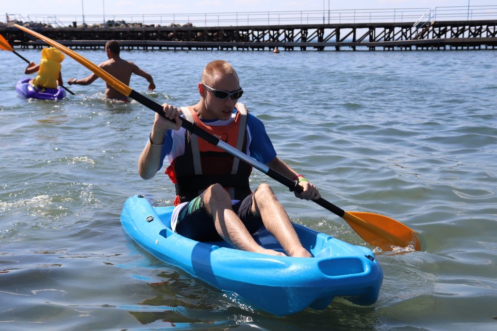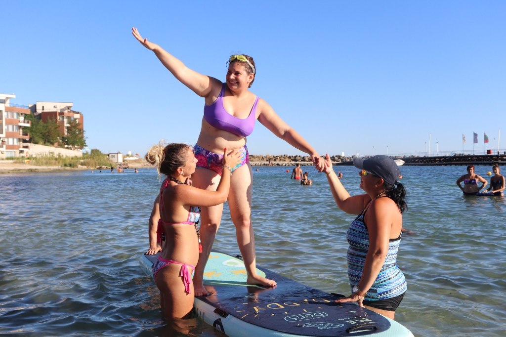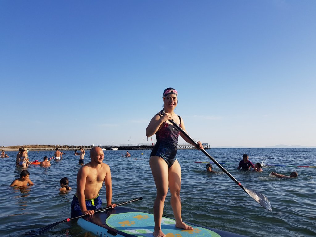 The activities of the sports camp were related to the promotion of the activities of the NSA in the field of adapted water sports for people with different types of disabilities and special needs. The camp was opened by Prof. Nikolay Izov – Rector of NSA, who welcomed the participants, wished them success and took part in their first sports training on the beach. During the activities, the participants received support from Assoc. Prof. Stoyan Andonov, Deputy Minister of Youth and Sports. The main sports in which the participants took part were sailing, kayaking and swimming. In addition, all participants enjoyed the practice of the modern paddleboarding, as well as activities on the methodology Playdagodgy, which the Bulgarian sports development association implements within the project PLAY’IN Together and activities with the methodology Education through sport, on which BSDA works within of the co-funded Erasmus+ initiatives #SPORTolerance and Sport.Youth.Inclusion. There was also a hike within the Hike Together project, during which the participants in the camp enjoyed nature in VUSB Nessebar. All activities during the adapted water sports camp were entitled with the slogan SHOUT’N SHARE in order to raise awareness of youth para-sports.